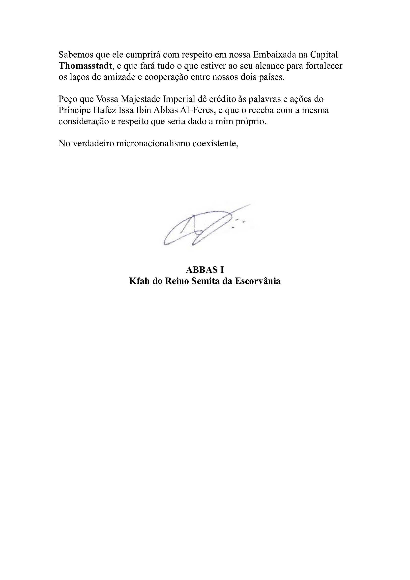 CARTA CREDENCIAL DE EMBAIXADOR ESCORVANÊS - Império Alemão